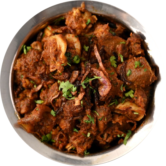 A spicy, dry dish made with tender mutton cooked in Kolhapuri spices